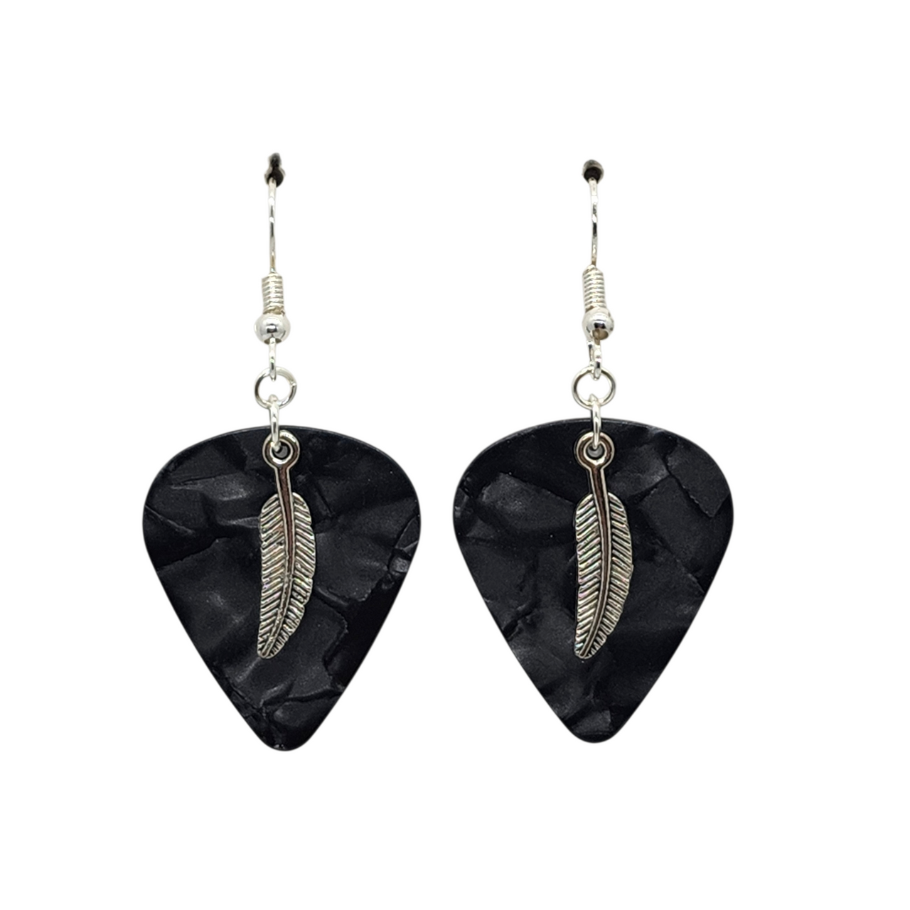 NEW! Handmade in the USA Guitar Pick Earrings with Feather Charm.
